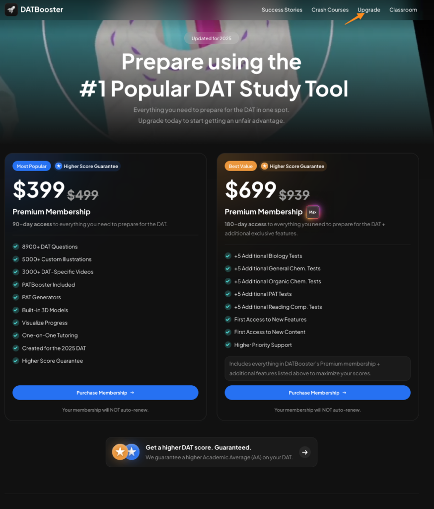 Step 3: You should now be directed to the DAT Booster upgrade page. Go ahead and choose the membership type you want to purchase.