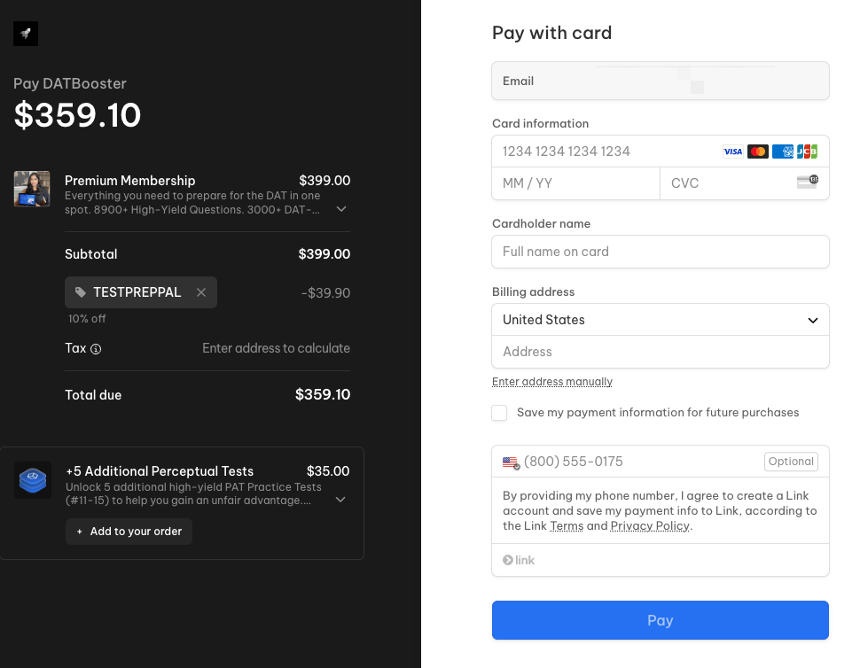 Step 4: Then you are redirected to the payment page where you will add your coupon code TESTPREPPAL in the discount box. Add in your payment details and that's it. Enjoy the savings.