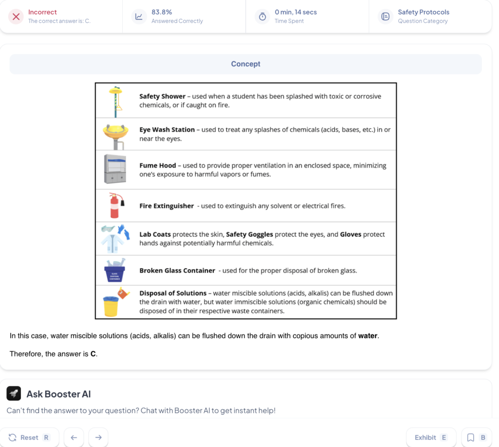 You can mark your answer and verify it on the spot. Whether your answer is true or false, you will get to see a detailed explanation (picture below) for the right answer in written + video form. Also, they have the Booster AI assistant in case you still need further explanations.