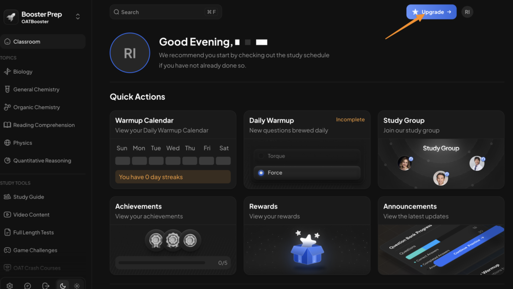 Step 1: Visit the OAT Booster website and sign up to create a free account.